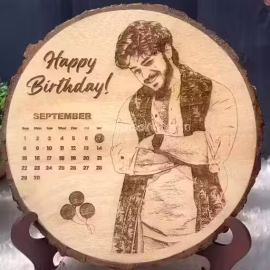 Wooden Circular 3D EngravedCustom 3D Photo Engraved Wood Slice – Happy Birthday Special Edition
