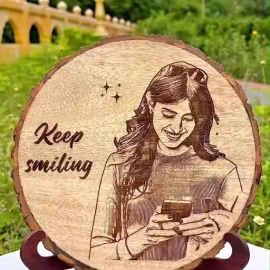 Wooden Circular 3D EngravedCustom 3D Engraved Wooden “Keep Smiling” Portrait Slice